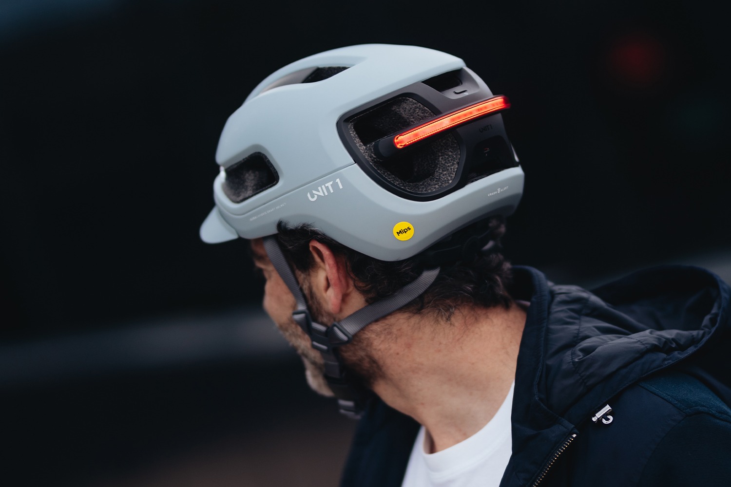 Leistung trifft Stil AURA ist ein leichter und atmungsaktiver Urban/Sport-Hybrid-E-Bike-Helm, der dich bei Stürzen bis zu 45 km/h schützt (zertifiziert nach Sicherheitsstandard NTA8776). Es ist ein äußerst vielseitiger Helm, der sich an verschiedene Fahrstile anpasst und alle Register zieht: integrierte Beleuchtung, Blinker, Bremslichter, Mips®, FIDLOCK-Magnetverschluss, abnehmbares Magnetschild, zusätzliche Speed-Visiere und stilvolles Design. Crash Alert Die Crash Alert-Technologie erkennt einen Unfall. Wenn du nicht reagierst, sendet sie einen SOS-Notruf mit deinem Standort an deinen Notfallkontakt. Sensoren im Helm erkennen einen schweren Unfall und lösen einen Sicherheits-Countdown in der UNIT 1 App aus. Wenn du auf diesen Countdown nicht reagierst, wird sofort eine SOS-SMS mit deinem Standort an einen vorab konfigurierten Notfallkontakt gesendet. Lightlink Fahrradbeleuchtung sollte nicht isoliert funktionieren und ein verwirrendes Durcheinander zufälliger Blinksignale erzeugen. Lightlink, die firmeneigene Technologie, verbindet alle Geräte miteinander und synchronisiert mehrere Leuchten, sodass sie als Einheit zusammenarbeiten. Dies sorgt für eine gleichmäßige, konsistente Ausleuchtung Ihrer Umgebung, verbessert deine Sichtbarkeit im Straßenverkehr und macht deine Signale unmissverständlich. Merkmale – Mips-System – Leichtes Design – Vorne und hinten – Leichtes magnetisches Schild – Bremslichter – Magnetische Schnalle – Fernbedienung – Fit-System – Blinker In-App-Funktionen – Crash Alert – Anpassbare Beleuchtung – Regen- und Tageslichtmodus – Batterieüberwachung Spezifikationen – 14 feste Belüftungsöffnungen – Gewicht: S 460 g – M 440 g – L 580 g – IP-67 Wasserdicht – 1350 mAh Lithium-Ionen-Akku – 3–30 Stunden Akkulaufzeit – USB-C-Aufladung – Bluetooth 5.0 Konstruktion – EPS-Innenfutter + PC-Schale -S 52–55 cm – M 55–59,5 cm – L 59,5–62 cm – NTA-8776, CPSC & EN-1078 Kompatibel mit: UNIT 1 App, UNIT 1 Fernbedienung, Speed-Visiere, Winter-Innenschale, Insektenschutzgitter, Smart Light Lieferumfang: AURA Smart Helm inkl. USB-C-Ladekabel