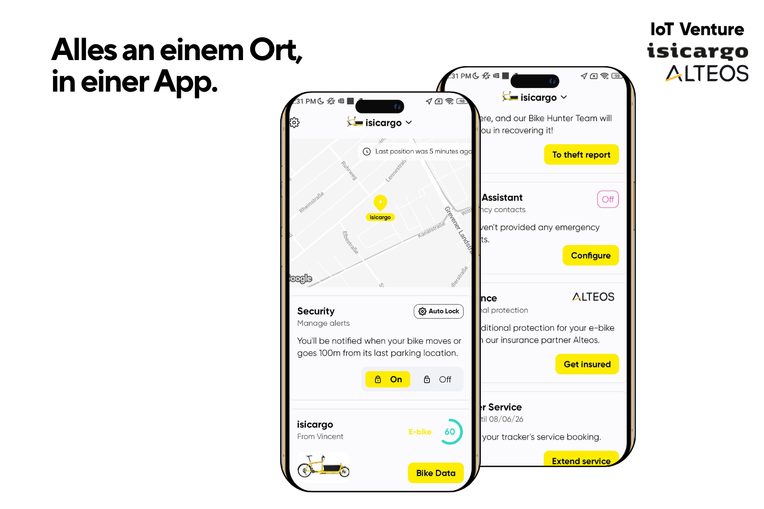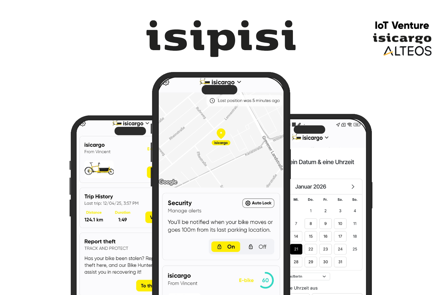 Die isipisi-App ist die digitale Kunden- und Serviceplattform des Berliner Fachhändlers und Lastenrad-Spezialisten isicargo. Gemeinsam mit der IoT Venture GmbH entwickelt, vernetzt sie Kund:innen, Werkstatt und Marke zu einem nahtlosen After-Sales-Erlebnis – vom Kauf über Service und Wartung bis hin zur Absicherung durch den Versicherungspartner Alteos. Optional ergänzt wird das Ganze durch GPS-Tracking auf Basis der IoT-Venture-Technologie. Das Versprechen an Endkund:innen: isipisi macht das Fahren easy – dein Fahrrad ist geschützt, Werkstattbesuche sind planbar und transparent, und Service fühlt sich endlich so unkompliziert an, wie er sein sollte.