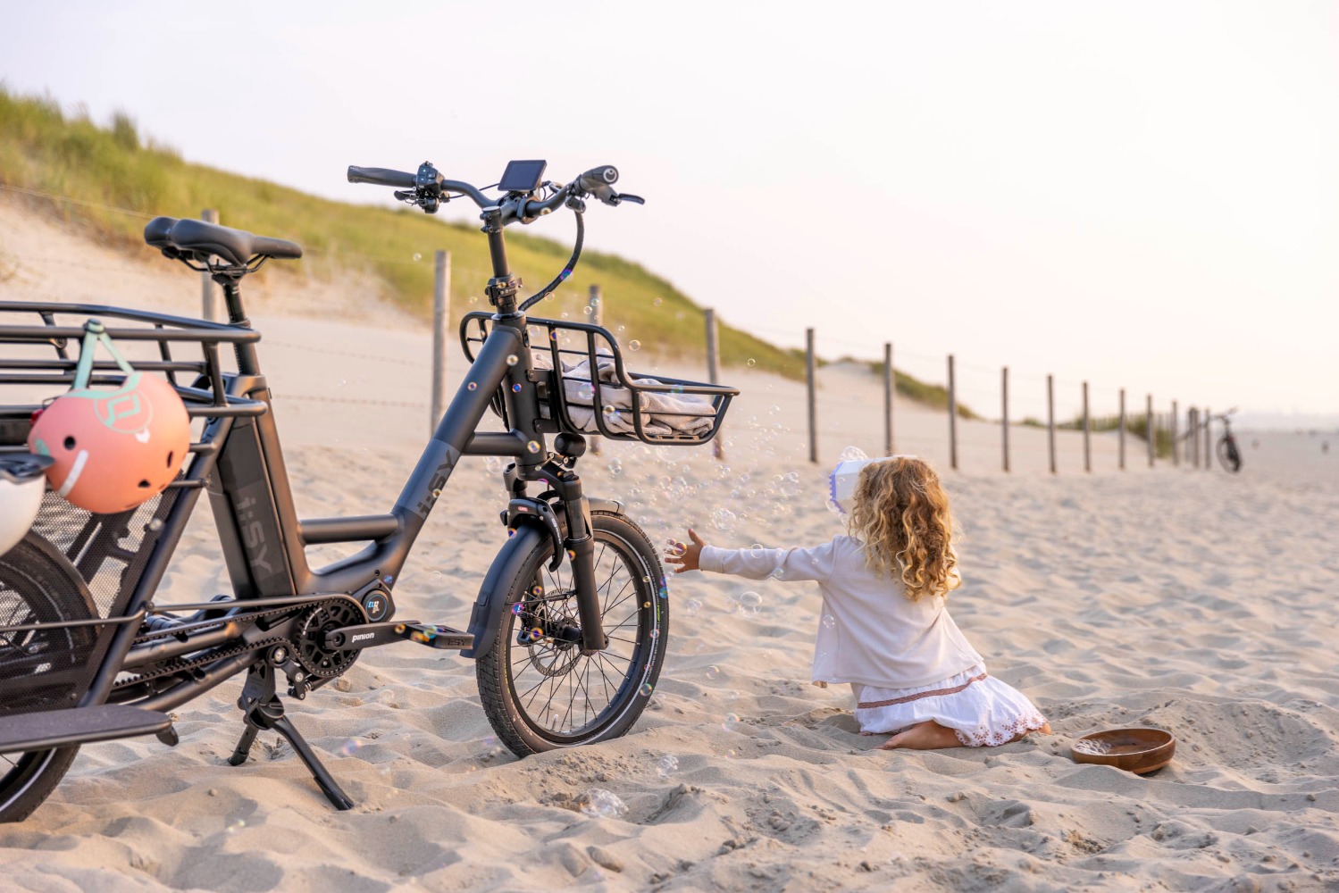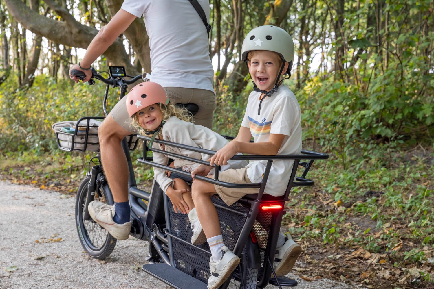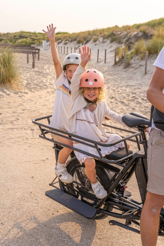 Mobilität für Alle! Ob Kindergarten, Einkauf oder Fahrt zum See – unser i:SY Longtail ist für urbane Mobilität gemacht. Auf dem verlängerten Gepäckträger nehmen bis zu 2 Co-Pilot:innen Platz – im Kindersitz. Dank verstellbarer Vollfederung bietet es stets maximalen Komfort. Die kraftvolle MGU von PINION bringt dich und dein teuerstes Gut flink überall hin – vor allem am Stau vorbei. Das praktische Zubehör bietet Kinderhänden und -füßen sicheren Halt. Für noch mehr Transportvolumen kannst du unseren i:SY Frontgepäckträger montieren.