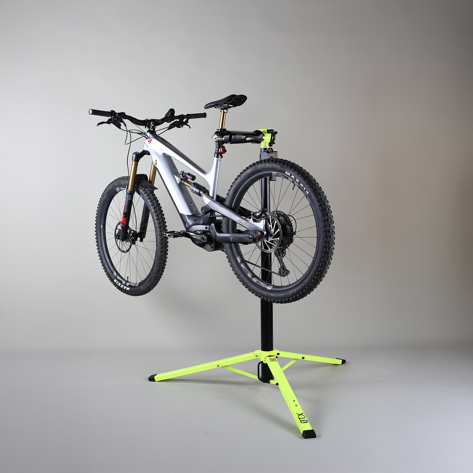 Aufgebaut hebt er mühelos, was andere Ständer ins Wanken bringt: schwere Fahrräder und E-Bikes.