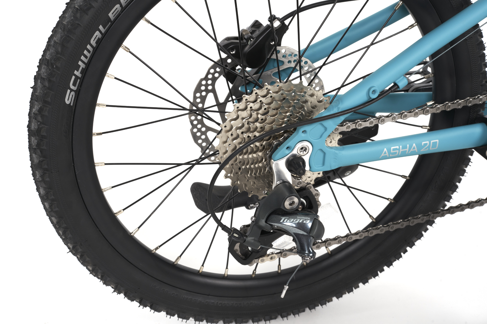 Die 20-Zoll-Reifen mit griffigem Profil bieten sicheren Halt auf Asphalt, Schotter und Waldwegen und bleiben gleichzeitig leichtläufig für den täglichen Einsatz. Kindgerechte Kontaktpunkte wie Lenker, Sattel und Pedale unterstützen eine ergonomische Sitzposition und sorgen für Komfort auch auf längeren Fahrten.