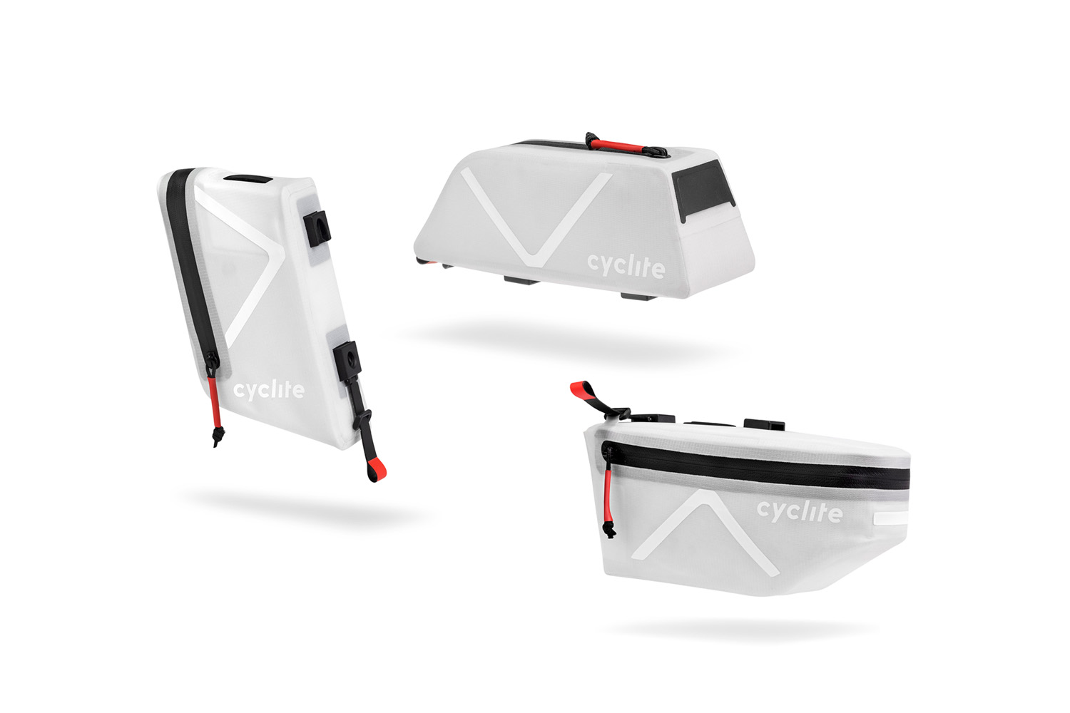 Alle Produkte sind mit großen Reflektorflächen ausgestattet, die Satteltasche ermöglicht die Befestigung von Rücklichtern oder auch Radargeräten. Alle Produkte sind einzeln in Schwarz oder Hellgrau erhältlich.
