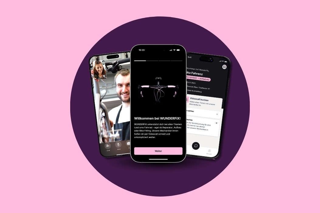 Mit detaillierter Diagnose im Video-Call, unseren eigenen geschulten Remote-Fahrradmechaniker:innen, einer integrierten Ersatzteilbeschaffung, einem detaillierten Ticketing sowie persönlichen Ansprechpartner:innen bringt WUNDERFiX Customer Support ins 21. Jahrhundert – effizient, einfach und nachhaltig. Als Basis dient hierfür eine selbst entwickelte Software-Lösung. Für End User erfolgt der Zugriff via App (iOS/Android) oder Web-Version für den Browser. Customer Support-Teams erhalten ein eigenes Backend sowie Insights per Mail-Reportings.