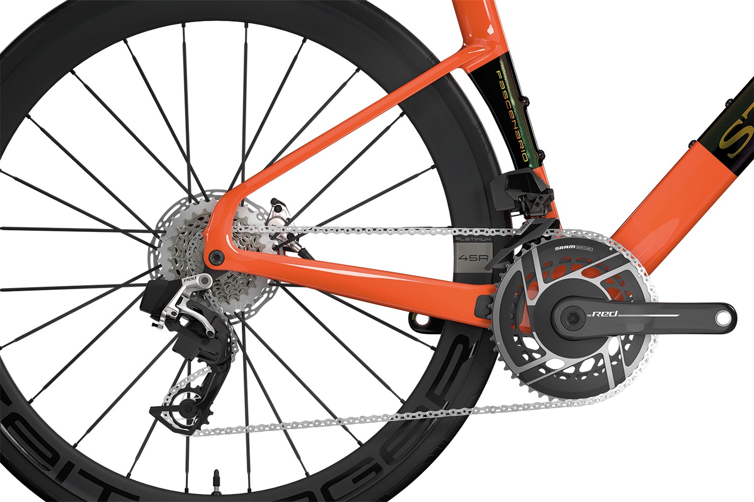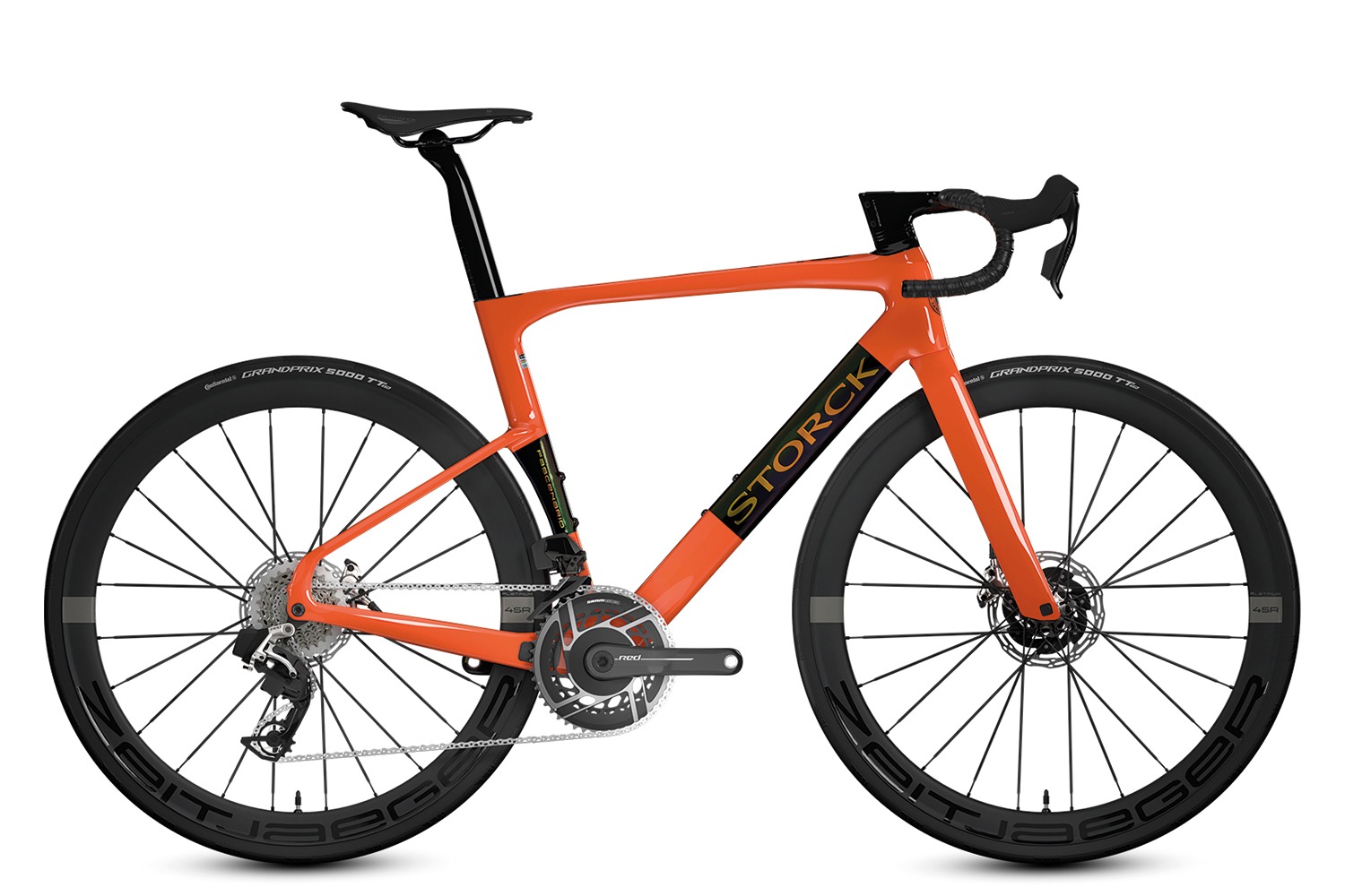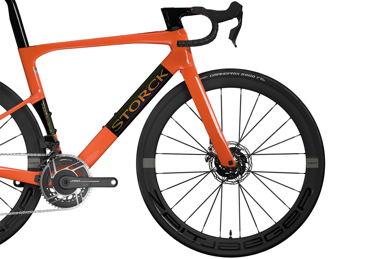 The Fascenario.5 Team can be equipped with the latest groupsets from Shimano or SRAM. Hydraulic disc brakes ensure finely adjustable deceleration in all weathers, while lightweight, aerodynamic wheels such as the Storck Zeitjaeger or the DT Swiss ARC keep the overall weight low and the rolling speed high.