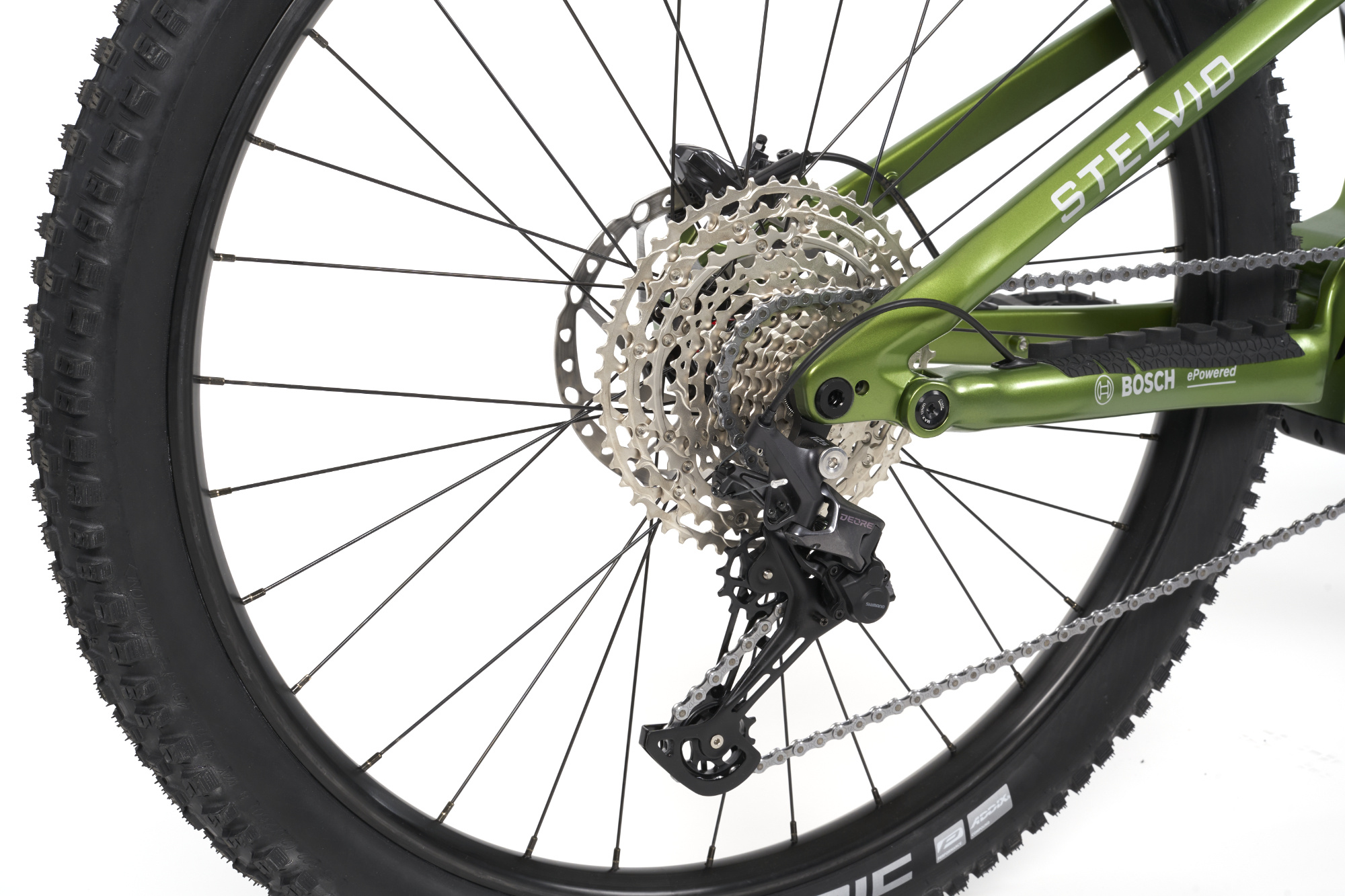 The MYVELO Stelvio E-Fully MTB is a full-suspension e-mountain bike designed for challenging terrain, trails and sporty descents. It has a high-quality aluminum frame with polished weld seams and is available in two frame sizes. The motor is the latest generation from Bosch with 100 Nm torque, which provides powerful support even on steep climbs and technical terrain. The battery has a capacity of 800 Wh and enables ranges of up to around 130 kilometers with appropriate use.