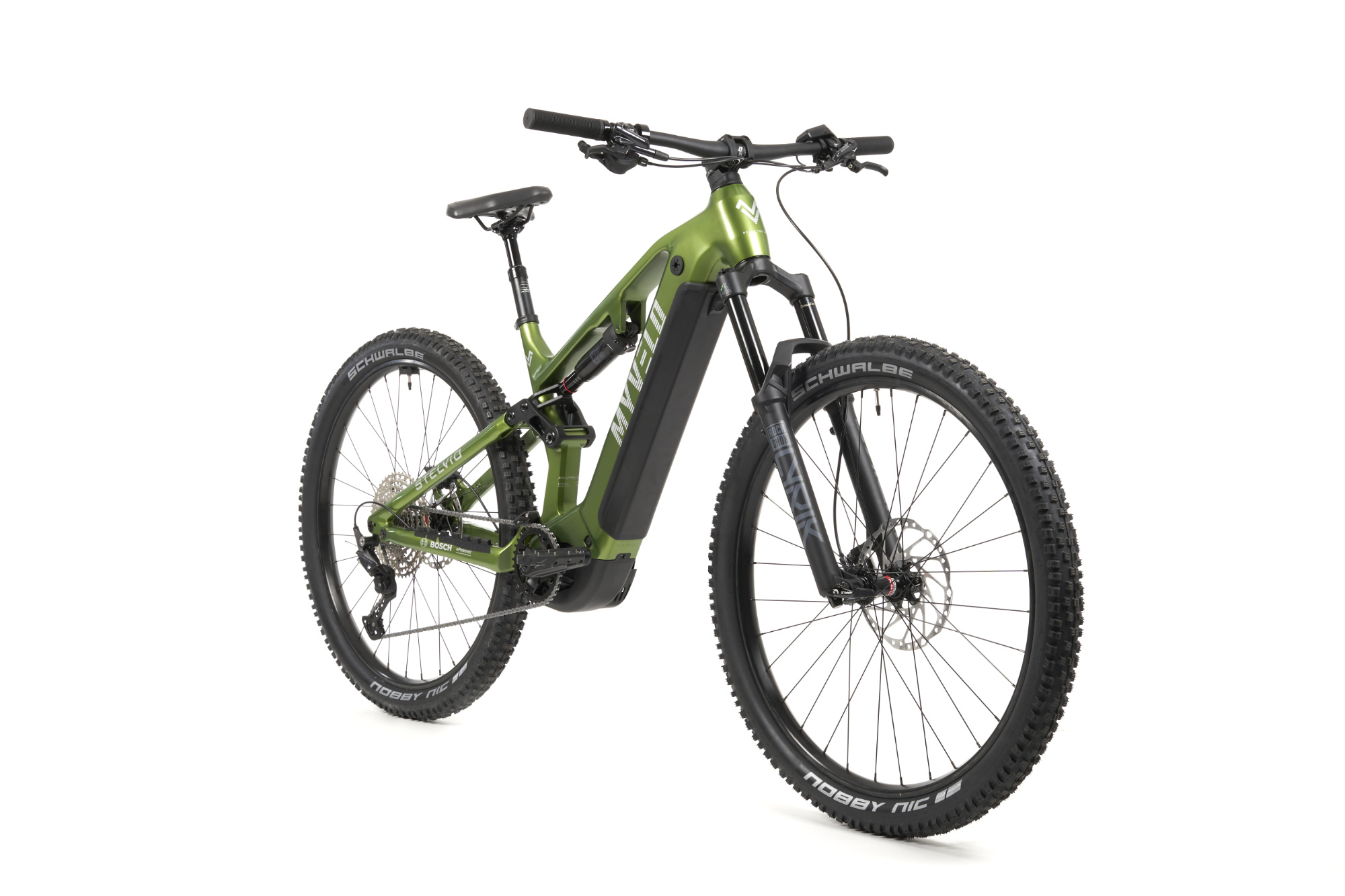 Schwalbe Nobby Nic tires are mounted on 29-inch aluminium wheels for grip and traction. A lowerable Vario seat post from PRO allows you to quickly adjust the seating position while riding. The total weight of the bike is around 26.5 kg.