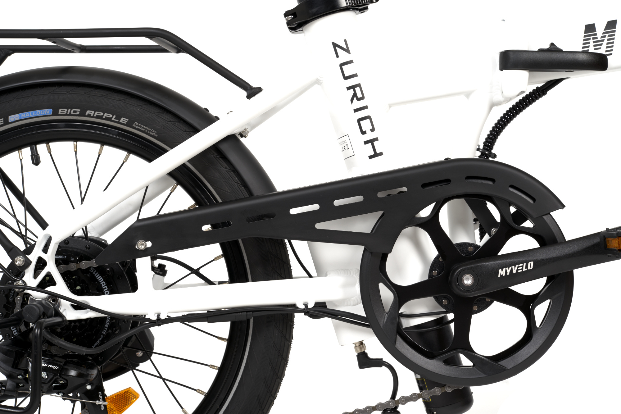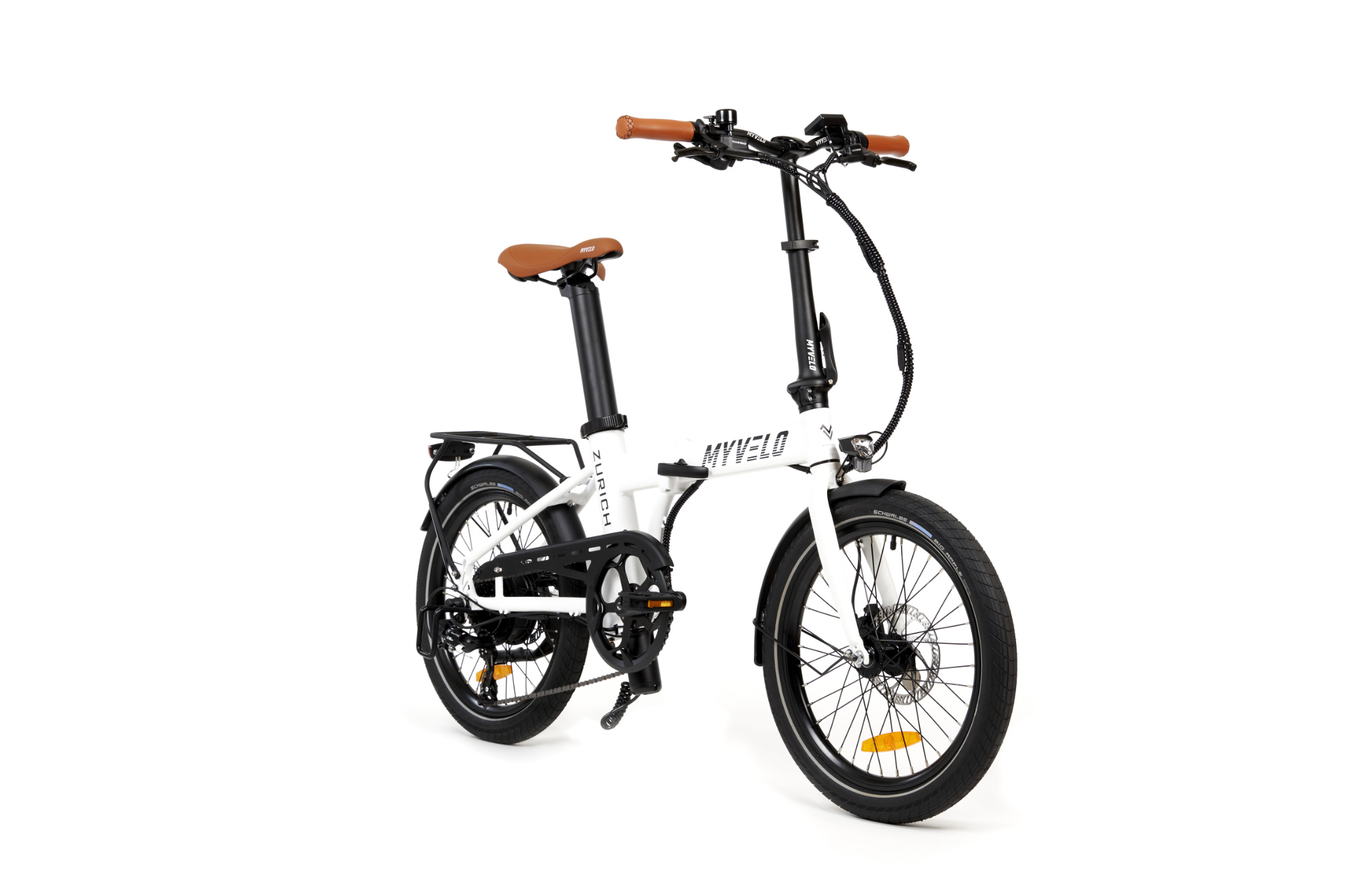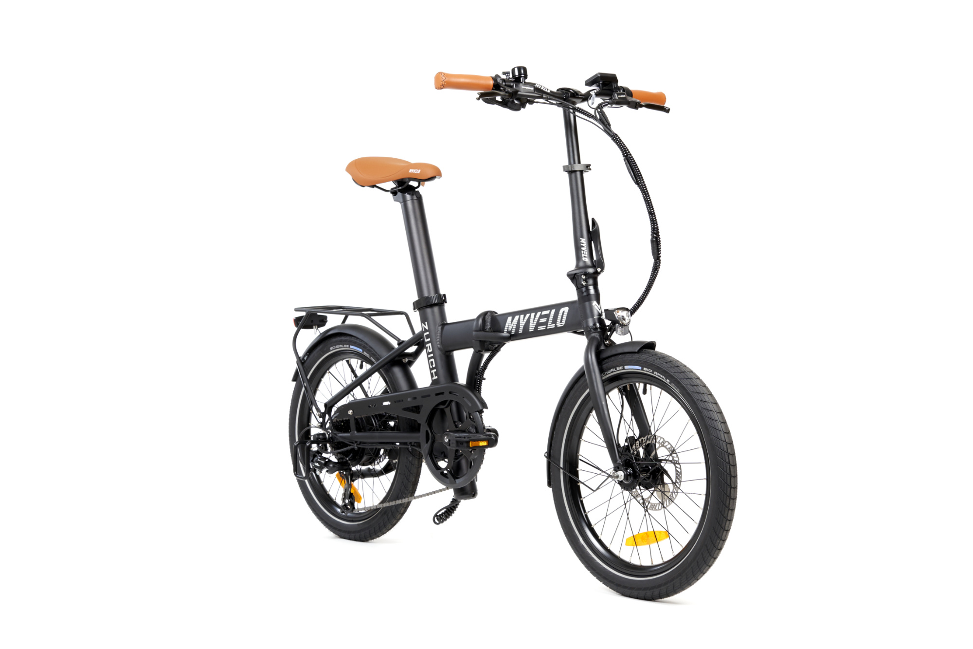 Compact, lightweight and powerful – the MYVELO Zürich is the folding e-bike for modern mobility in everyday life. Folded up in a few simple steps, it fits easily on the train, in the car or at home and is ready for use at any time. When unfolded, it impresses with a stable riding experience, reliable support from the Bafang motor up to 25 km/h and a range suitable for everyday use thanks to the integrated 504 Wh battery. High-quality components such as Shimano gears, hydraulic disc brakes and comfortable details ensure safety and riding enjoyment in the city and on longer journeys. The MYVELO Zürich combines flexibility, comfort and quality in a well thought-out, stylish folding e-bike.