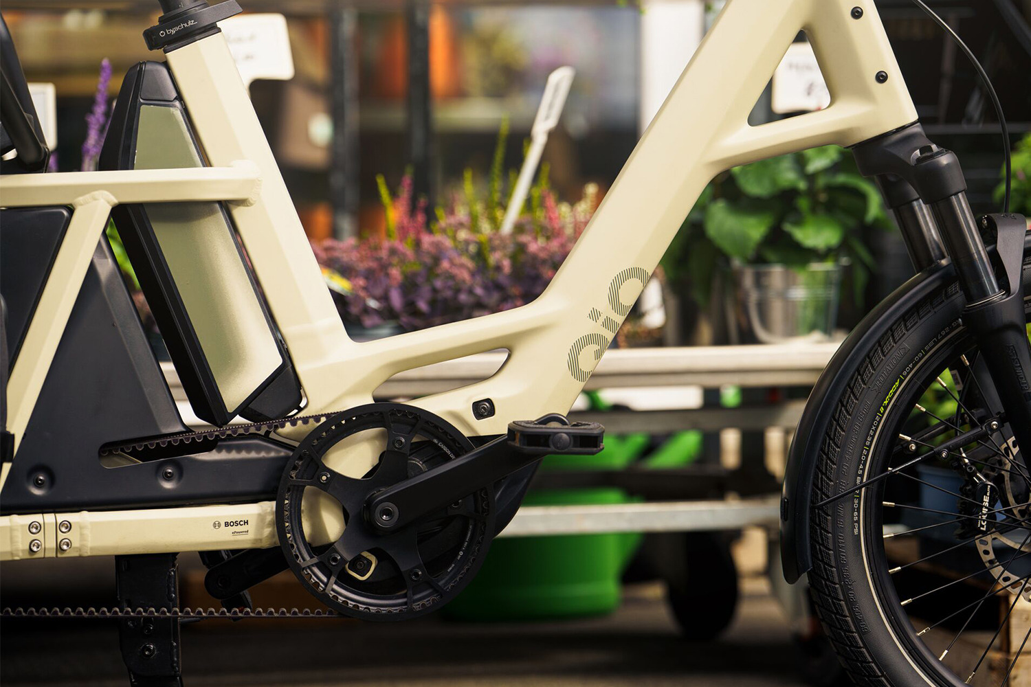 The Bosch “Cargo Line” motor with Smart System provides particularly powerful assistance up to 25 km/h – ideal for heavy loads and demanding routes. The continuously variable Enviolo Automatiq hub gear takes care of the shifting, so you can concentrate fully on the ride and your surroundings. The belt drive is also almost invisible to you – it runs quietly, is low-maintenance and durable.