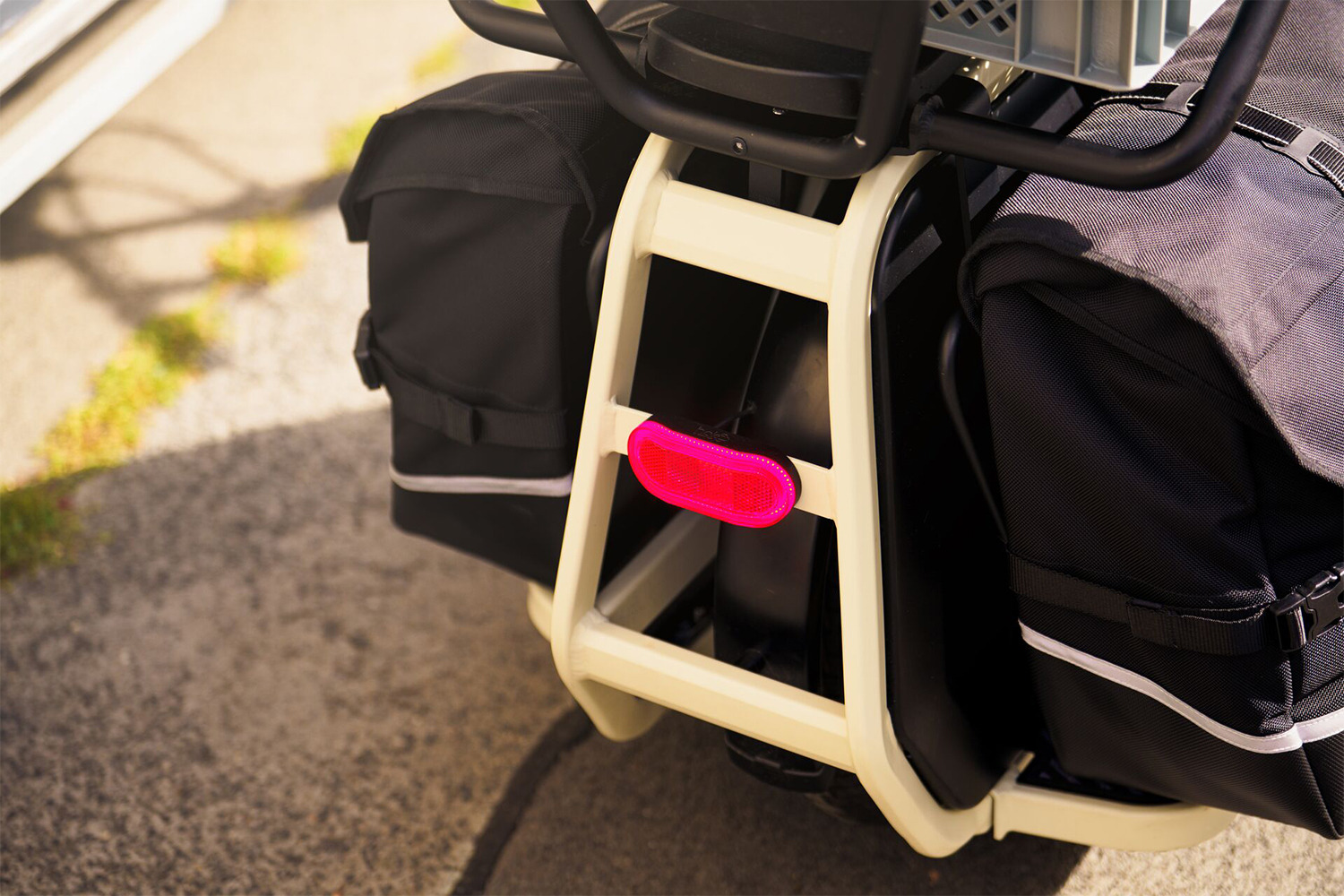 The “Long CLAx” from QiO is the highest quality model in the Long range – developed for all those who want to combine maximum transport performance with the highest level of riding comfort. The combination of an 80 mm suspension fork and suspension seat post provides noticeable relief on uneven paths and makes even fully loaded rides comfortable.