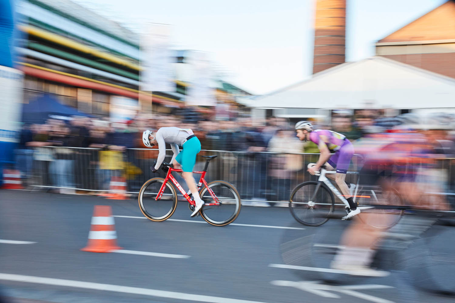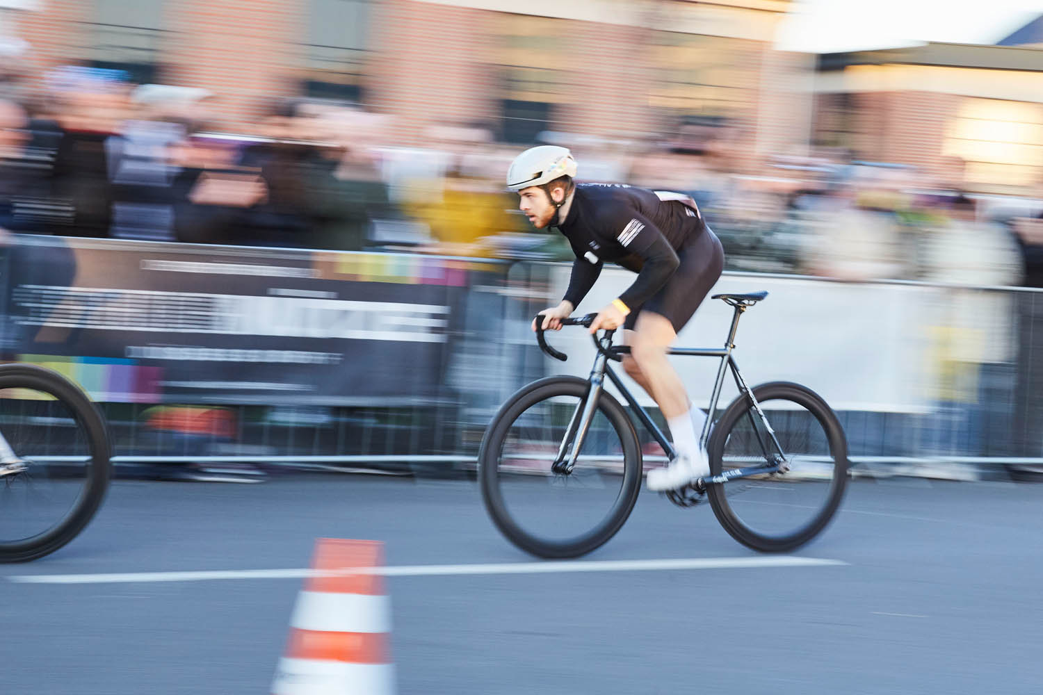 Fixedgear Crit? – This is a race on a winding circuit with track wheels. Without brakes and with a fixed gear. The riding experience is completely different from that of a conventional bike. Due to the fixed hub, the rider has to pedal constantly. Even in the bends. This requires a certain amount of courage and skill. Due to the rigid connection between the crank and the rear wheel, braking is only possible by counter-steering. In fixed-gear races, both accelerating after and braking before the bend is a feat of strength.