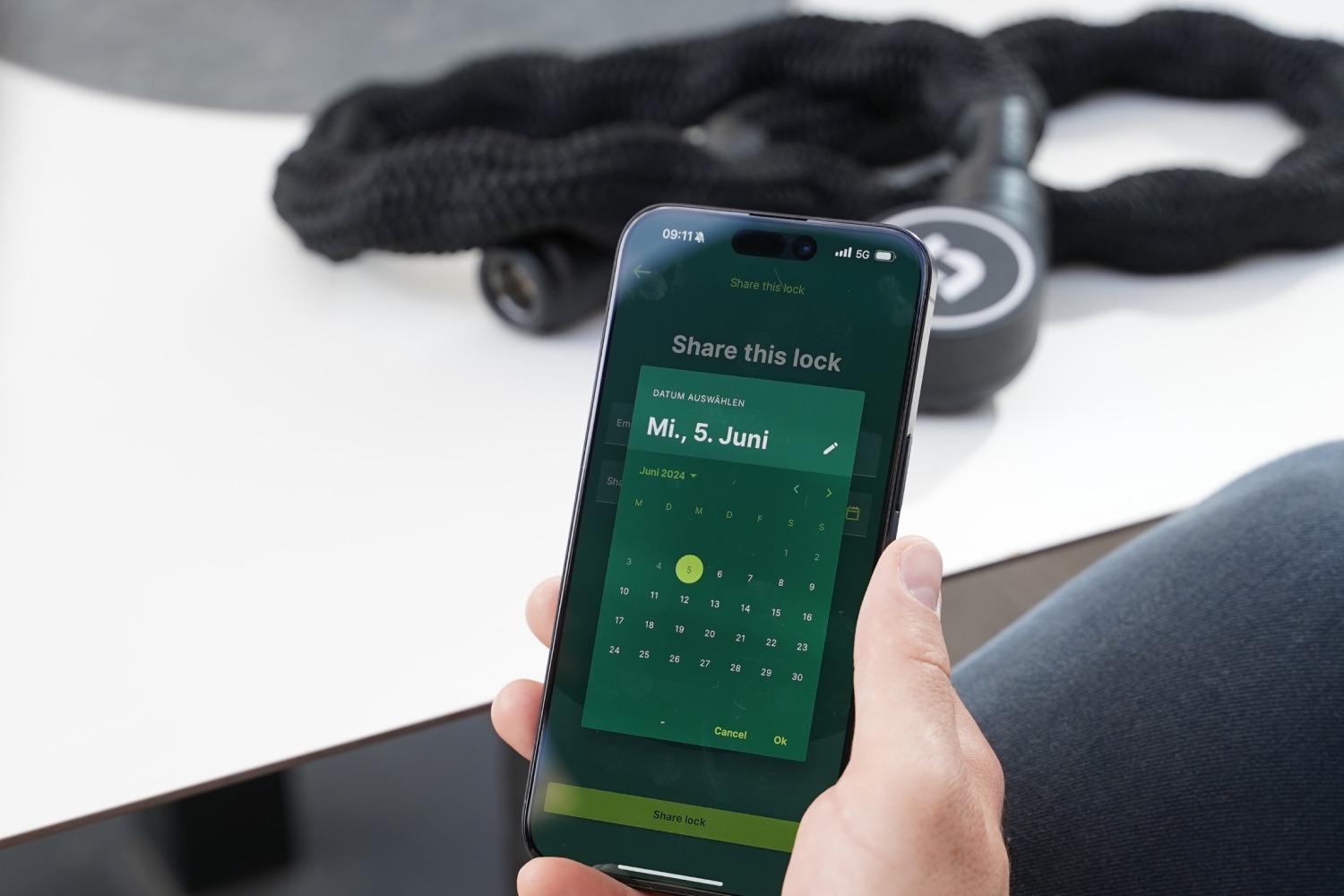 Sobald das erledigt ist, lässt sich das Schloss ganz einfach öffnen: In der App tippen, das Smartphone mit dem NFC‑Sensor an die NFC‑Antenne des Schlosses halten – klick – und es entriegelt. Die App bietet über die reine Entsperrfunktion hinaus praktische Zusatzfeatures. Dazu gehören etwa das einfache Teilen des Schlosses mit anderen Personen sowie – bei aktiviertem Standort – eine Entsperrhistorie, mit der Sie die Nutzung Ihres Schlosses jederzeit im Blick behalten.